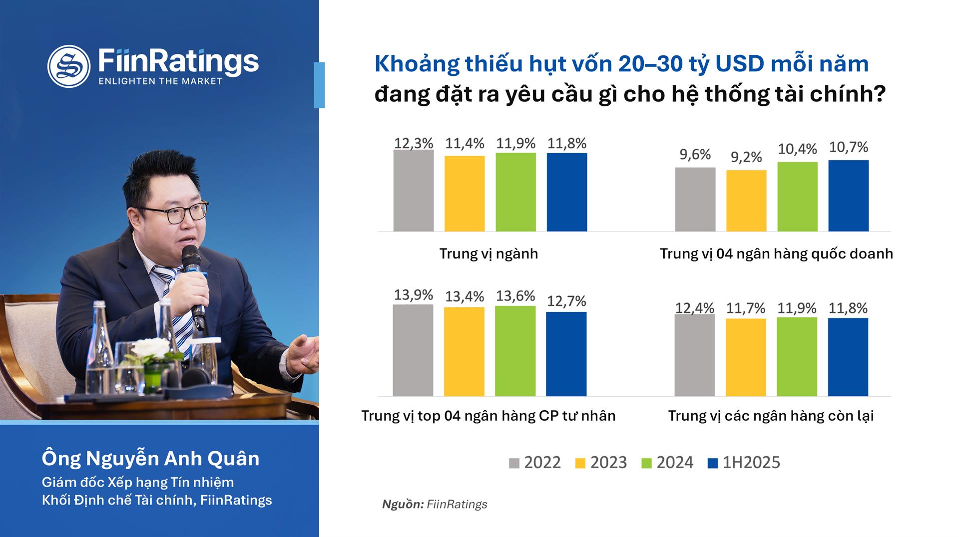 Nội dung báo cáo được tổng hợp từ phiên thảo luận giữa ông Kim Eng Tan, Giám đốc Xếp hạng Tín nhiệm Quốc gia khu vực Châu Á - Thái Bình Dương, S&P Global Ratings, và ông Nguyễn Anh Quân, Giám đốc Xếp hạng Khối Định chế Tài chính, FiinRatings.